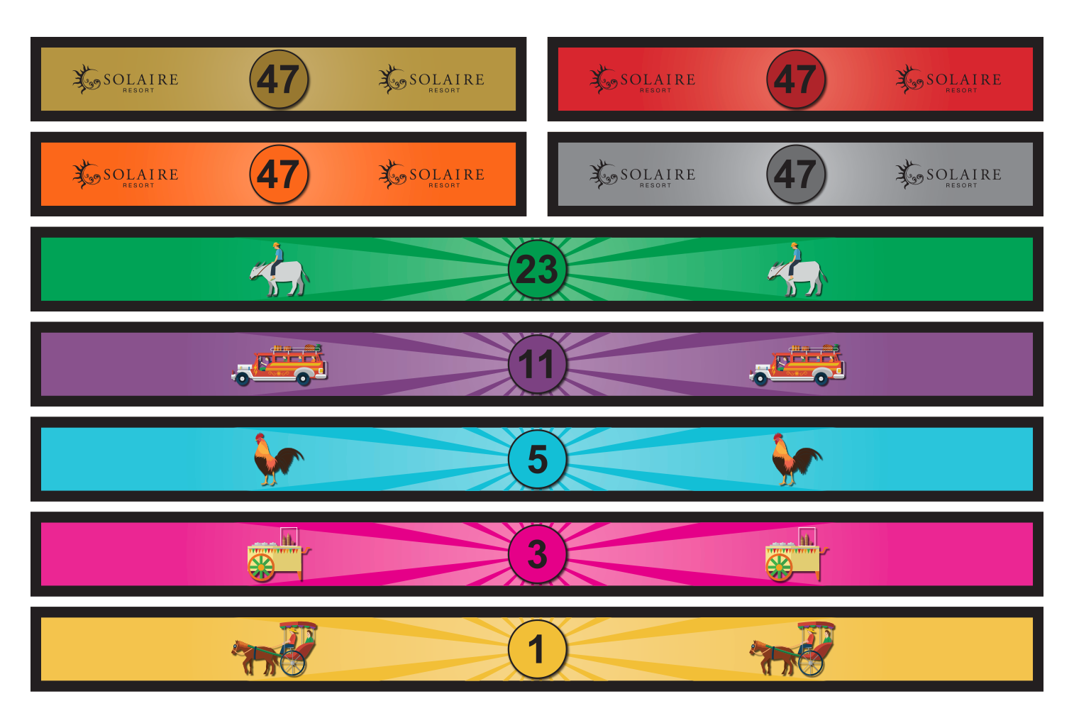 - The Dealer removes all losing wagers, and pays winning wagers at the listed odds.